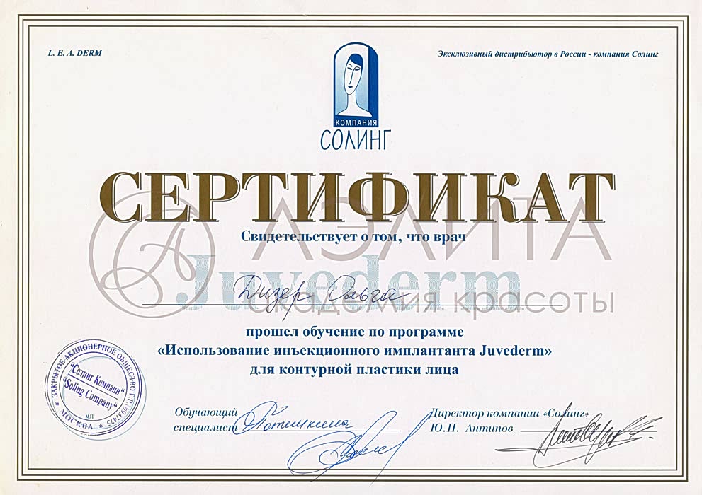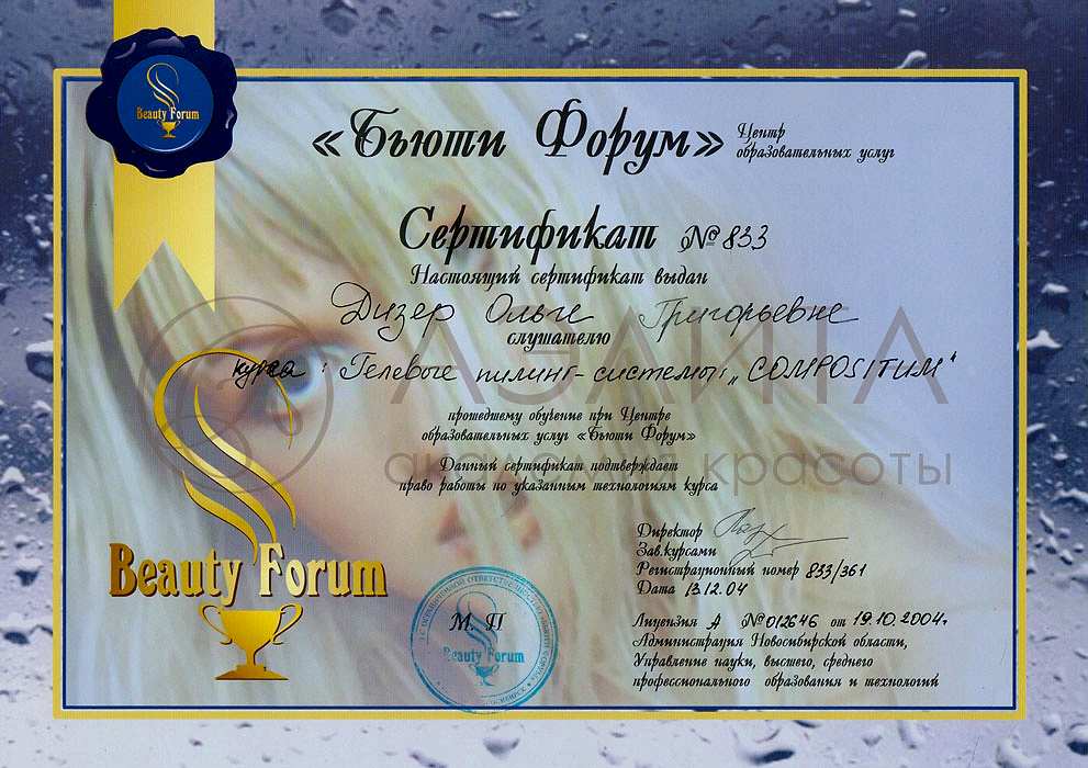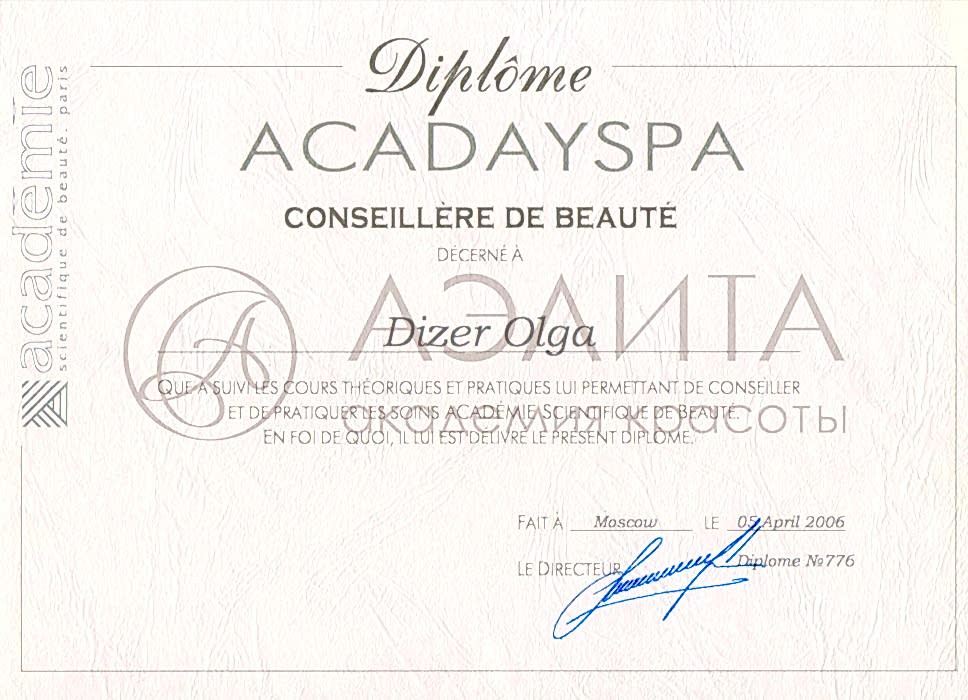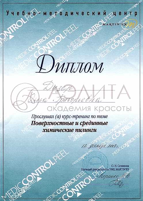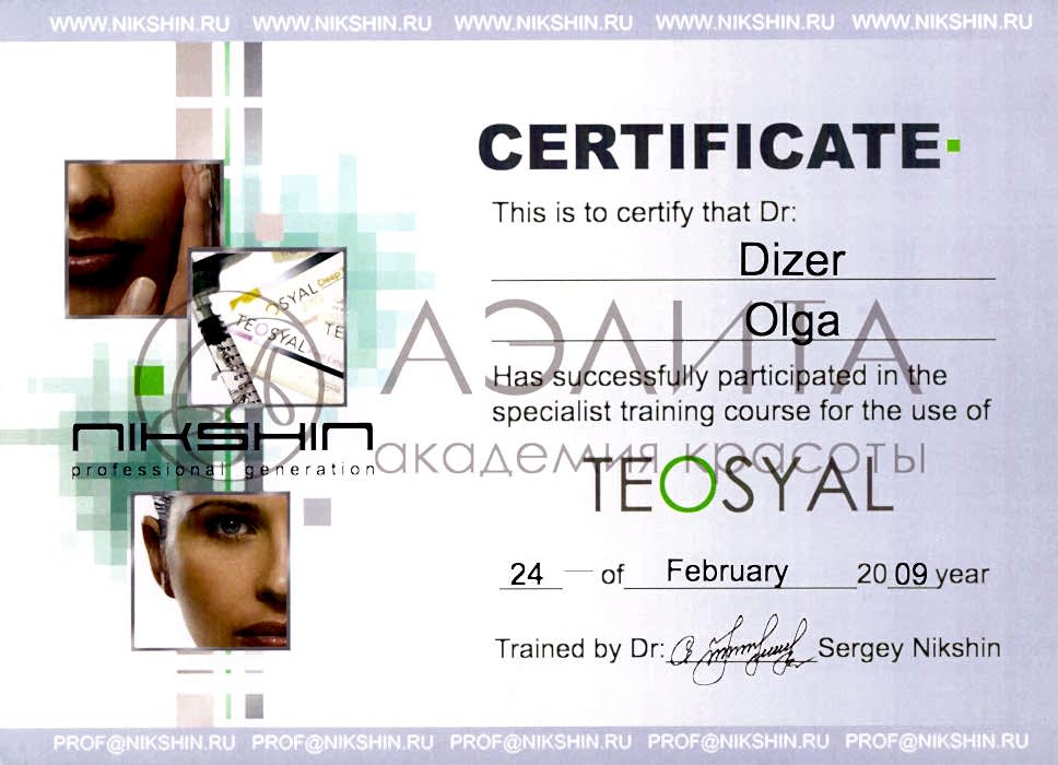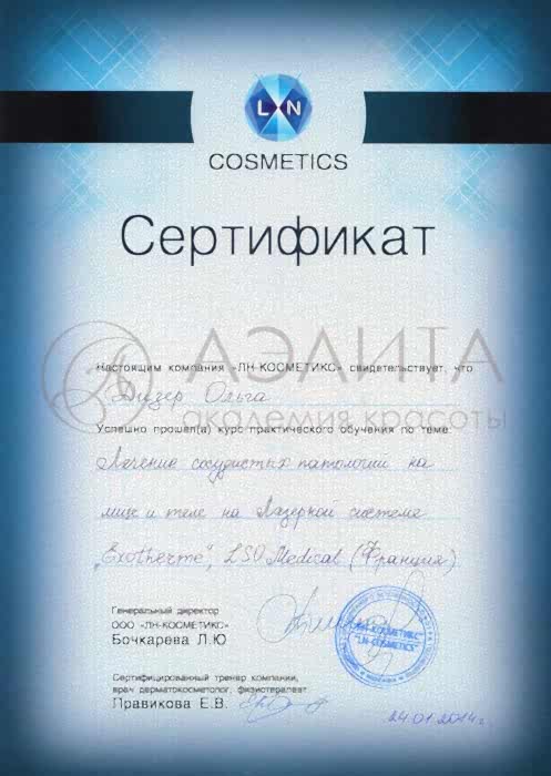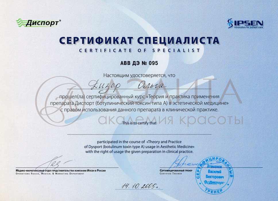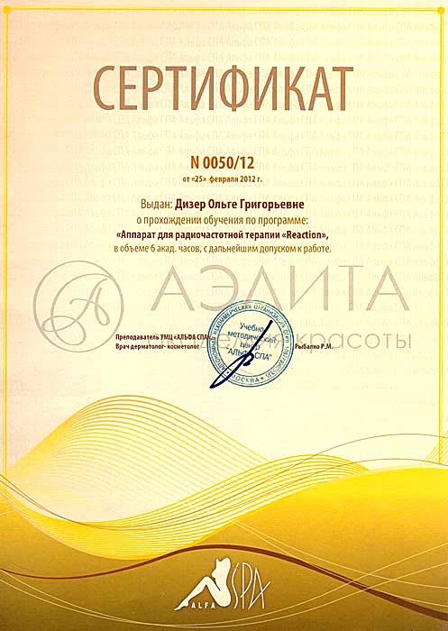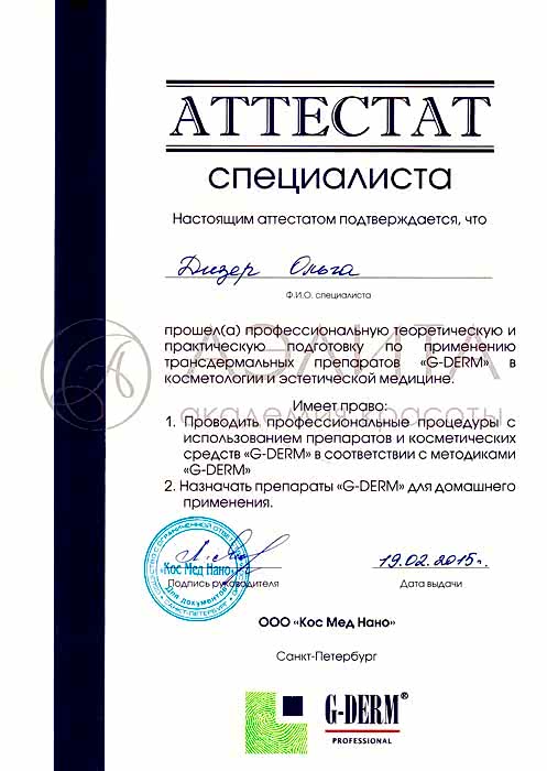 Огромное спасибо специалисту Дизер О.Г. всегда подскажет какие процедуры необходимо делать, очень довольна её работой.